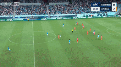 比赛第64分钟,韦斯利助攻列昂索破门,场上比分深圳新鹏城1-2山东泰山。